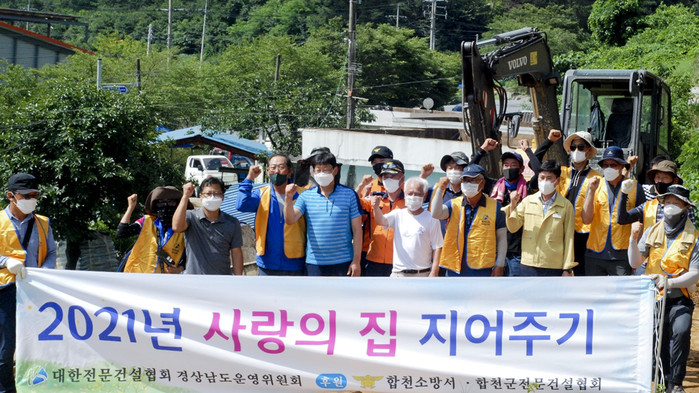 합천군(군수 문준희) 용주면에서 2021년 7월 26일 성산리 이모씨 집에서 용주면장, 합천군전문건설협회, 합천소방서 관계자 등이 참석 한 가운데 ‘사랑의 집 지어주기’ 착공식이 열렸다.