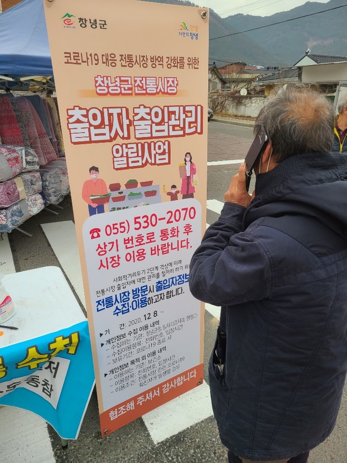 창녕군(군수 한정우)은 지난 8일 사회적 거리두기가 2단계로 격상됨에 따라 코로나19 확산 방지를 위해 전통시장 출입자관리 알림시스템을 도입했다고 밝혔다.