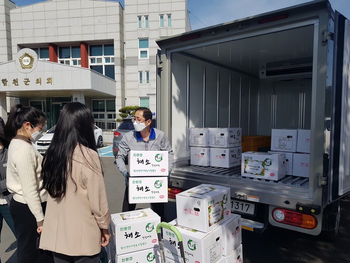합천군은 코로나19 장기화로 개학이 연기됨에 따라 학교급식을 제때 납품하지 못해 어려움에 처해있는 학교급식용 지역 친환경 농산물 생산 농가들을 돕기 위해 친환경농산물 팔아주기 운동에 동참했다고 14일 밝혔다.