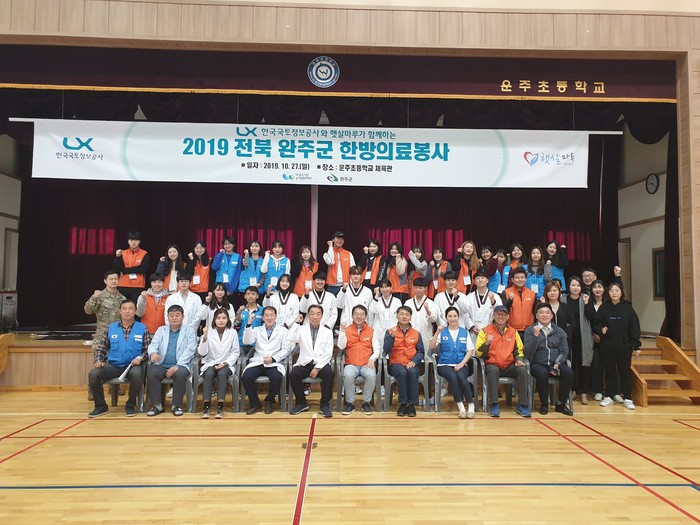 [시민일보 = 여영준 기자](사)햇살마루(이사장 엄경희)는 지난 27일 완주군 운주면 운주초등학교 체육관에서 한국국토정보공사LX와 협력으로 ‘2019 완주군 한방의료봉사’ 활동을 실시했다.