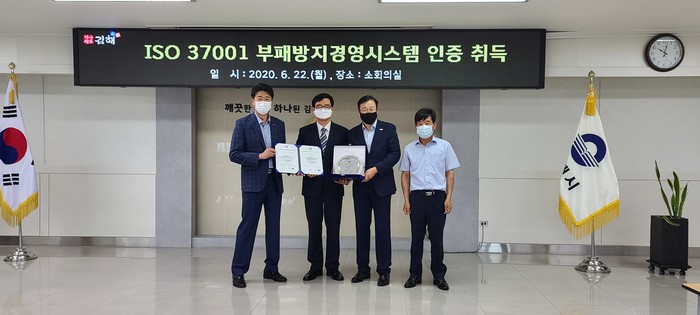 김해시 상하수도사업소는 국제 표준 부패방지경영시스템 ISO 37001 인증을 취득했다고 밝혔다.
