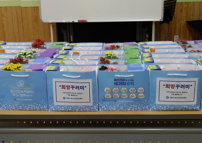 대상은 정신건강복지센터 등록 중증정신질환자, 자살고위험군 등 194명이며, 지난 6일부터 23일까지 3주간 비대면 가정배달 방식으로 전달한다.