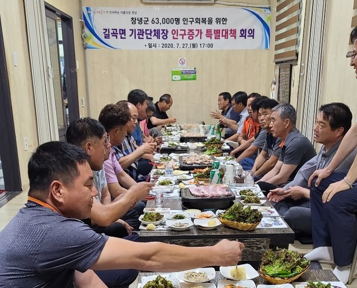 이날 대책회의에서는 창녕군의 인구증가시책을 소개하고 출생 대비 사망이 많은 자연적 감소 현상이 지속되고 있는 현 상황을 벗어나, 사람이 모여드는 고장 길곡을 만들기 위해 면단위 기관·단체장들이 현 상황을 토의해보고 대책을 숙의하는 뜻깊은 시간을 가졌다.