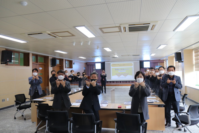 3월1일 새로 부임한 학교장 대면인사를 시작으로 청렴 다짐 선서와 함께 약속과 실천의 의미를 담은 청렴약속선언 “청렴엄지척” 퍼포먼스 및 3월 정책관리자회의 내용 전달 순으로 진행이 되었으며, 합천학습종합클리닉센터 운영, 학교밖 전문적학습공동체 공모, 학교로 찾아가는 아이톡톡 연수 지원, 학교교육지원센터 운영 안내등 전반적으로 학교교육과정을 지원하기 위한 내용과 학교 시설유지 보수지원 운영 안내, 2022년 초등학교 광역 통학구역 추진 계획등 학교행정을 지원하는 내용 등을 꼼꼼하게 회의에 담았다.