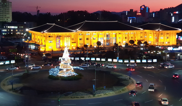 야간 경관조명을 입은 트리는 여서동 로터리 광장에도 똑같이 설치됐으며, 내년 설 연휴인 2월 14일까지 불을 밝힌다.