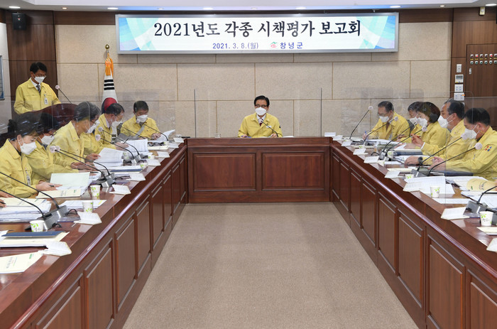 창녕군(군수 한정우)은 8일 군청 군정회의실에서 2021년도 중앙 및 경남도 등에 대한 각종 평가대비 보고회를 가졌다.