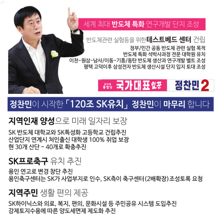 정 전 시장은 “SK하이닉스 반도체 클러스터가 용인에 유치된 것에 대해 매우 환영한다”며 “우리 용인은 1983년 삼성전자 기흥공장이 들어선 이후 35년간 반도체산업의 산파역할을 한 곳인 만큼 반도체산업 발전을 위한 특화개발이 필요하다”고 말했다.