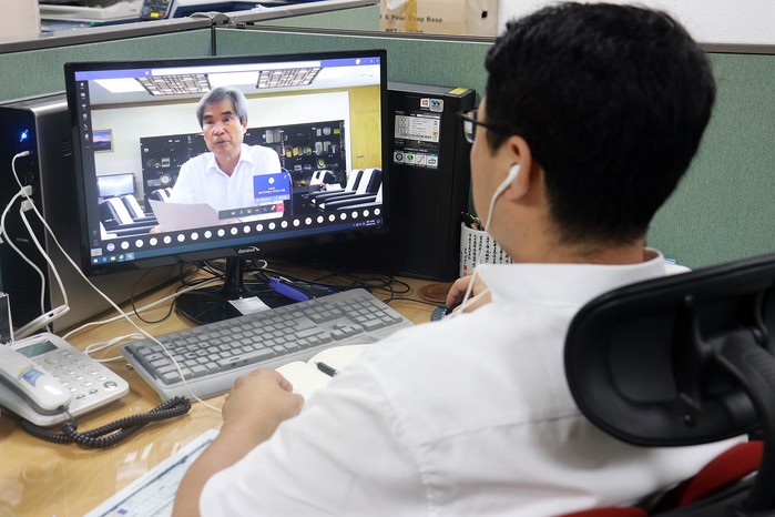 이날 월례조회는 남기찬 사장이 사장집무실에서 인사 및 당부의 말을 하고, 임원과 직원들은 모두 사무실의 업무용 PC를 통해 이를 시청하는 형식으로 진행됐다.