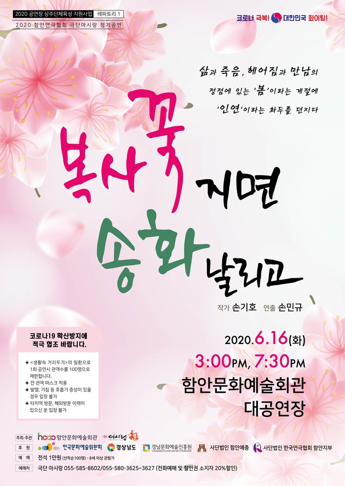 삶과 죽음, 헤어짐과 만남의 정점에 있는 ‘봄’이라는 계절에 ‘인연’ 이라는 화두를 놓은 극단 아시랑의 연극 ‘복사꽃 지면 송화 날리고’가 오는 16일 오후 3시, 7시 30분 2회에 걸쳐 함안문화예술회관 대공연장 무대에 오른다.