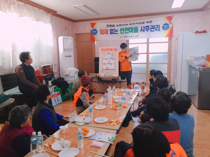 이번 사후관리는 ▶ 각 세대별 단독경보형감지기·소화기 관리 상태 점검 및 재설치 ▶ 화재예방 및 소화기활용 초기대응 요령교육 ▶ 주택용 소방시설 설치촉진관련 홍보물 배부 등으로 진행되었다. 더불어 마을주민들을 대상으로 주택화재예방 소방안전교육을 가져 큰 호응을 얻었다.