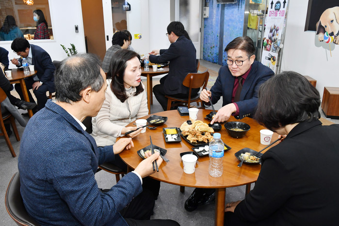 이날 청년몰 방문은 코로나19에 대한 우려로 인해 외식업계, 전통시장 등이 매출감소로 어려움을 겪고 있어, 양산시장과 일자리경제과 직원들이 솔선하여 외부식당 이용 활성화에 나선 것이다.
