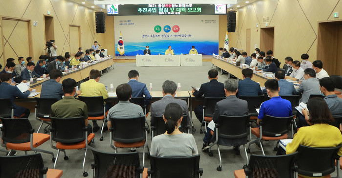 이를 위해 17일 오후 함양군청 대회의실에서 서춘수 군수의 주재로 함양군 전 국장 및 부서장, 사업담당과 엑스포 조직위 김종순 사무처장을 비롯한 전 본부장 및 부장과 엑스포 주관대행사(CJ ENM) 등이 참석한 가운데 엑스포 추진사업 점검 및 대책보고회를 개최하였다.