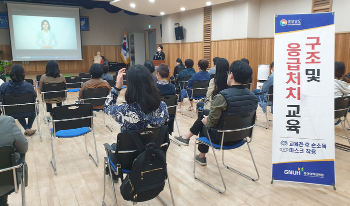 교육은 위탁의료기관인 경상대학교병원 경남권역응급의료센터팀(전문의 1명, 응급구조사 2명, 간호사 1명, 행정 1명)이 맡아 진행했다.