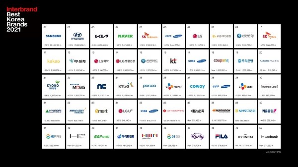 2021년 베스트 코리아 브랜드에 대한 자세한 내용 및 랭킹은 인터브랜드 서울 공식 홈페이지를 통해 확인할 수 있다.