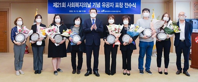 [광주=정찬남 기자] 광주광역시와 광주사회복지협의회는 12일 오전 시청 비즈니스룸에서‘제21회 사회복지의 날’을 기념해 그동안 사회복지 최일선에서 헌신한 유공자 16명에게 광주시장 표창패를 수여했다.