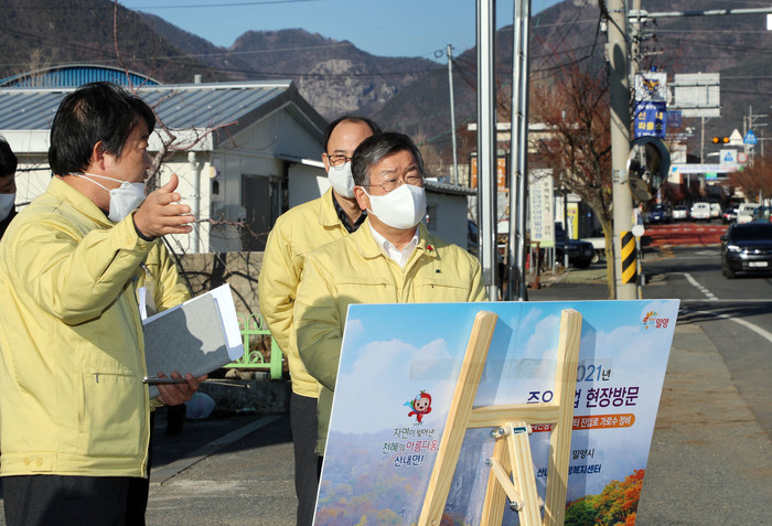 박 시장은 16개 읍면동의 주민 건의사업현장과 주요사업장을 비롯해 민생현장, 코로나19, AI 관련 방역현장 등 총 35개의 현안현장에 대해 1월 29일 하남읍과 초동면을 시작으로 2월 9일 삼랑진읍, 내일동까지 점검을 완료했다.