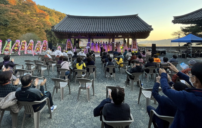 이어 국악인 심세희씨는 ‘상사화’ 등 퓨전 국악으로 고즈넉한 산사에서 마음의 평안을 얻어갈 수 있는 기회를 제공했다. 마지막 무대에는 초대가수 심신씨가 ‘오직 하나뿐인 그대’ 등을 열창하며 관객들과 감동적인 무대를 만들었다.