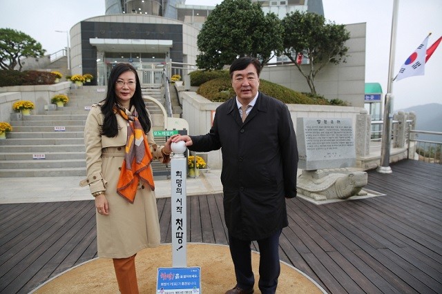 | ▲ 싱 하밍밍 주한 중국대사 부부 지난 23일 해남군 송지면 갈두리 땅끝 전망대에서 기념촬영 / 해남군 제공 |
