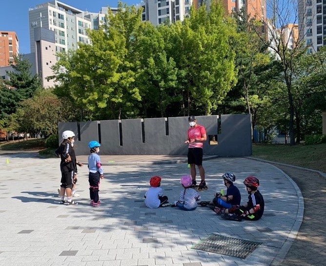 | ▲ 주민참여형 돌봄사업인 '인라인 수업' 프로그램이 진행되고 있다.(사진제공=중구청) |