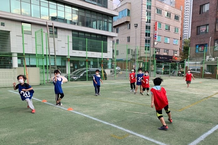 | ▲ 야외축구장에서 생활체육돌봄프로그램이 진행되고 있다.(사진제공=중구청) |