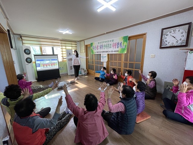 | ▲ 영암군, 정신건강 증진 위해 관내 경로당 4개소 어르신 대상 “내·안·애(내가 안아주고 사랑할게)”프로그램 진행 / 사진=영암군 제공 |