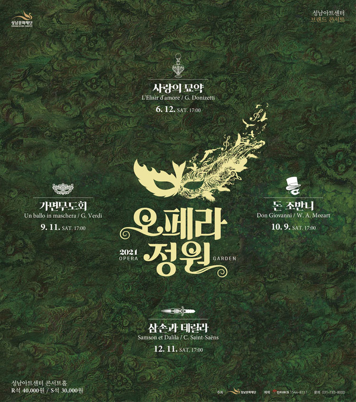 올해 공연은 ‘사랑의 묘약’을 시작으로, 비극적인 사랑을 노래한 베르디의 걸작 오페라 ‘가면무도회(9/11)’, 스페인 희대의 바람둥이 돈 후앙을 소재로 천재 작곡가 모차르트 예술의 절정을 보여주는 오페라 ‘돈 조반니(10/9)’, 그리고 성경 속 유대민족 영웅 이야기를 다룬 생상스의 오페라 ‘삼손과 데릴라(12/11)’의 총 4회가 진행될 예정이다.