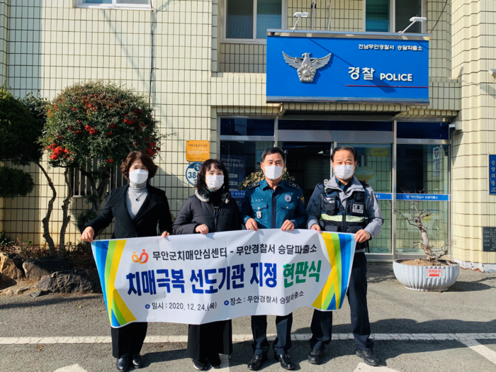 무안군(군수 김산)은 지난 24일 무안읍에 위치한 무안경찰서 승달파출소를 치매극복 선도기관으로 지정하고 현판식을 개최했다.