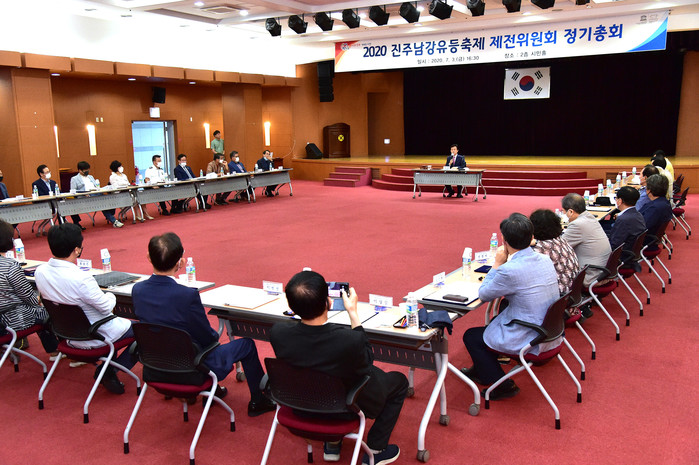 진주시는 지난 3일 시청 시민홀에서 2020년 진주남강유등축제 제전위원회 위촉식과 총회를 열고 코로나 19사태에 따른 축제 개최방안 마련에 나섰다. 이날 위촉식에는 조규일 진주시장과 서영수 진주문화예술재단 이사장, 지역 문화예술단체장 및 유관기관 관계자 등 40여 명이 참석했다.