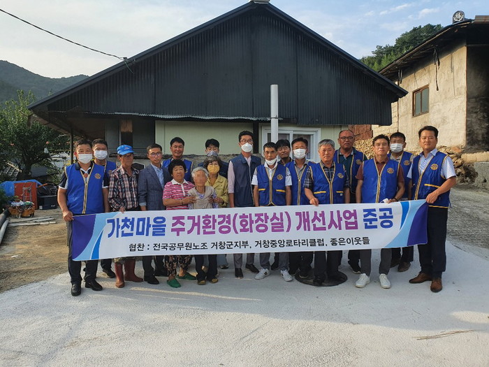 이번 봉사활동은 가천마을의 거동이 불편한 홀몸어르신가구가 기존 실외재래식화장실을 이용하기가 힘들다는 사연을 전해 듣고, 공무원노조 거창군지부(지부장 변현일)와의 연계를 통해 ‘대중적 실천사업’ 지원대상자로 선정, 300만 원의 사업비를 확보해 이뤄졌다.
