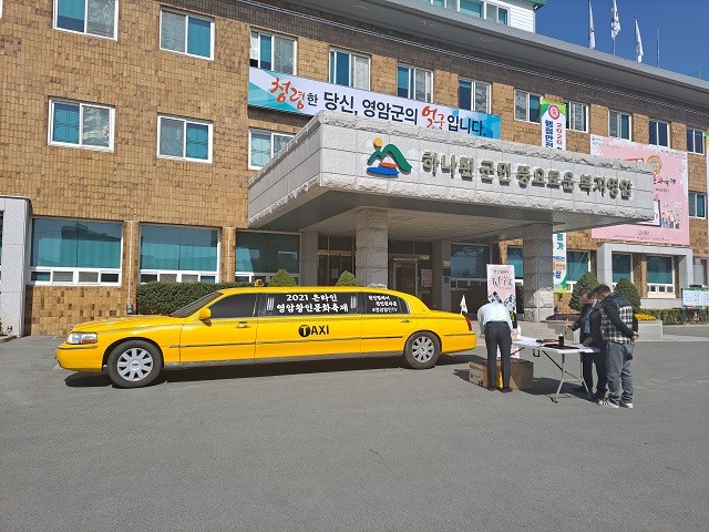 | ▲ 온라인 영암왕인문화축제 준비를 위한 ‘천인천자문 영암군편’이 지난 17일 영암군청 광장에서 깜짝 이벤트 형식으로 진행되고 있다. / 사진=영암군 제공 |