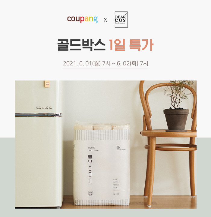 골드박스는 쿠팡 인기 상품을 하루간 특별 할인가에 판매하는 프로모션이다. 디어커스는 친환경 화장지 ‘뱀부500’을 할인가에 선보인다. 1일 오전 7시부터 24시간 동안 한정수량으로 진행되며, 무료배송 혜택까지 제공된다.