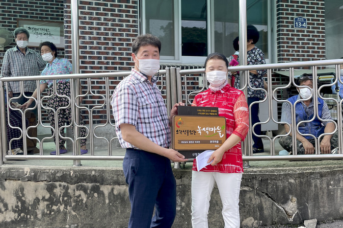 합천군 덕곡면 본곡마을(이장 박남순)이 산림청에서 주관하는 ‘2021년 소각산불 없는 녹색마을’에 선정되어, 26일 본곡마을에서 현판식을 개최했다.