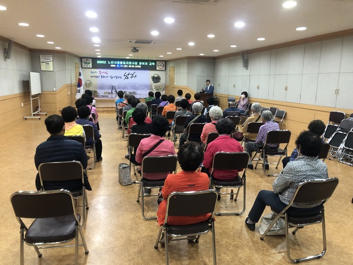 이날 교육은 지역 확산 방지와 고위험군인 노인들의 감염을 예방하기 위해 예방수칙과 발열체크, 마스크 착용 의무화, 개인위생관리 및 청결유지 등 어르신들이 건강하고 안전하게 활동에 참여할 수 있게 했다.