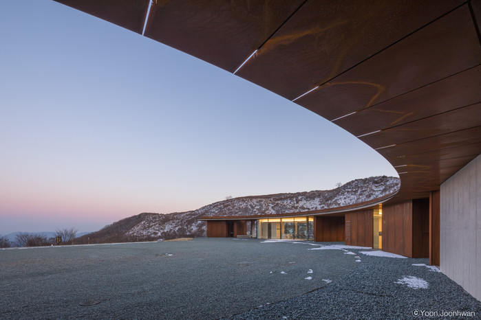 또한 건축물은 콘크리트 뼈대에 철과 유리만을 입혀 완성됐다. 철을 주재료로 사용했기 때문에 시간이 흐를수록 점점 자연과 동화되고 사계절의 변화에 맞추어 색이 바뀌고 비바람에 녹이 슬고 얼룩이 진다. 건축가(홍익대 임영한)는 “황매산이 어떤 명산보다 빼어난 경관을 지니듯 건축도 자연을 닮아가길 기대했다” 며 자연과 건축의 조화를 얼마나 중요시했는지 알 수 있는 대목이다.