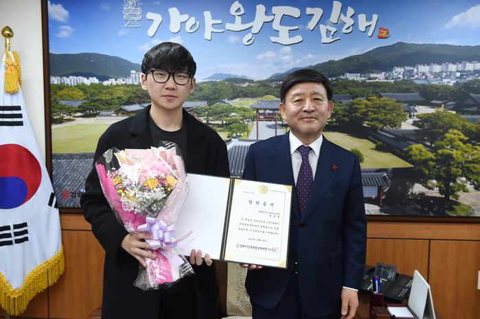 지난 20일, 허성곤 김해시장은 2020학년도 대입수능시험에서 만점을 받아 김해시인재육성장학재단 특별장학생으로 선발된 김해외고 3학년 송영준 학생에 대해 장학금 500만원을 전달하였다.