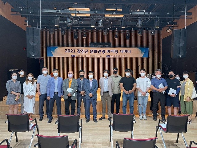 | ▲ 강진군 문화관광재단, 지난 6월 30일 군 관내 관광업계 종사자, 공무원, 상인연합회원 등을 대상으로 전남음악창작소에서 강진군의 효율적인 관광마케팅 전략 모색을 위한 ‘2021 강진군 문화관광 마케팅 세미나’ 행사 개최 후 기념촬영 / 사진 =강진군 제공 |