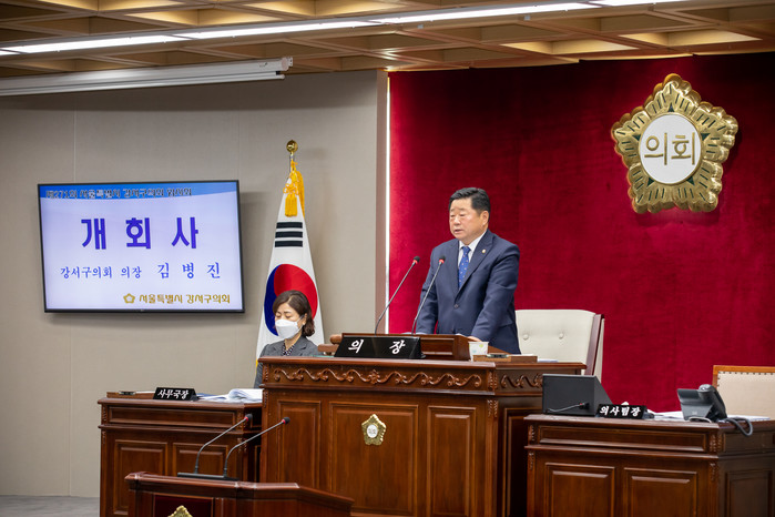 | 제271회 임시회를 개회하며 김병진 의장이 개회사를 하고 있다.(사진제공=강서구의회) |