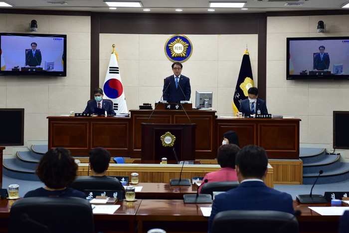 이칠봉 의장은 개회사를 통해 “짧은 의사일정이지만 소홀히 할 수 없는 중요한 안건들이 상정되는 만큼 적극적이고 능동적으로 임해 줄 것”을 동료 의원들에게 당부했다,