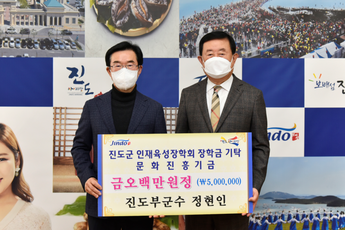28일 진도군에 따르면 정현인 부군수는 ▲인재육성 장학금 300만원 ▲문화진흥기금 200만원 등 총 500만원을 기탁했다.