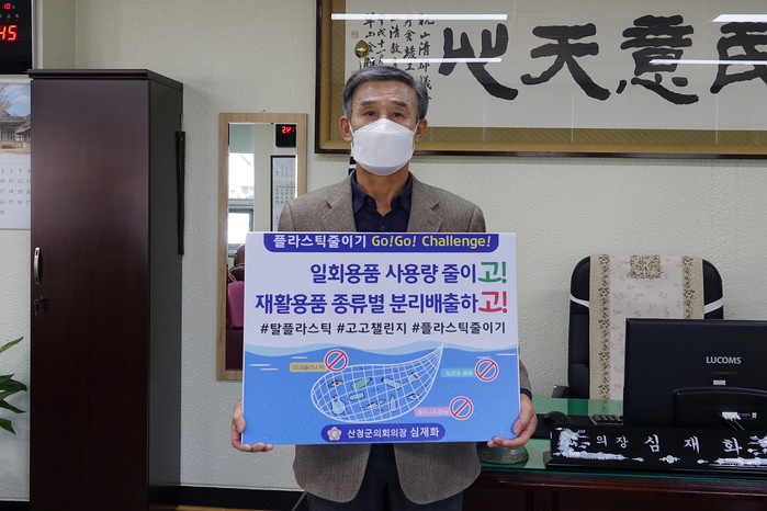 산청군의회는 심재화 산청군의회 의장이 생활 속 플라스틱 사용 줄이기 운동인 ‘고고(GO!GO!) 챌린지’에 동참했다고 23일 밝혔다.