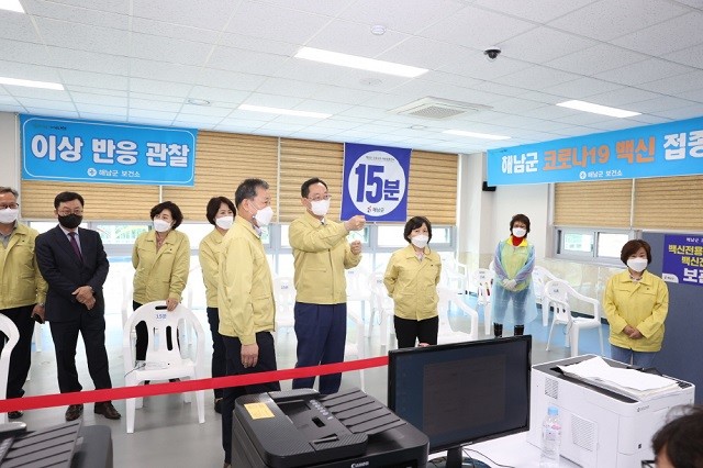 이와 관련 명현관 해남군수는 이날 군 백신접종센터를 방문, 읍면 버스 준비 상황과 접종 현황을 현장 점검했다.