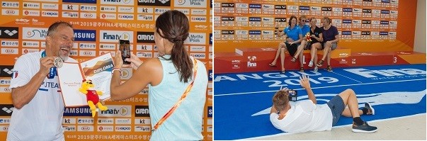 메달을 수상한 선수들과 가족은 물론이고 시상요원, 대회 관계자와 함께 사진을 찍으며 잊지 못할 추억을 만든다.마스터즈 대회 때마다 자주 만나 친해진 선수들 사이에서는 시상식장이 친목의 장이 되기도 하는 등 선수권대회에서는 볼 수 없는 자유로운 분위기가 연출되기도 한다.