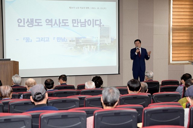 [광주=정찬남 기자] 이용섭 광주광역시장은 13일 광주노인회관에서 대한노인회 광주광역시연합회(회장 오병채) 초청으로 제34기 노인지도자대학 강연자로 나섰다.