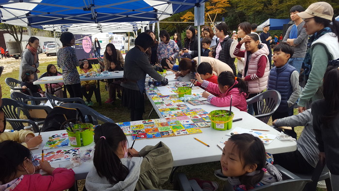 무대 주변에서는 세종대왕과 훈민정음 탁본 뜨기, 한글 긴소매 옷 만들기, 한글 멋글씨(캘리그래피), 얼굴꽃단장(페이스페인팅) 등 한글을 소재로 한 다채로운 체험행사는 방문객들의 즐거움을 더할 예정이다. 특히 한글조각 그림 그리기는 행사 종료 후 책테마파크 북카페에 벽화로 제작, 전시할 예정이다.