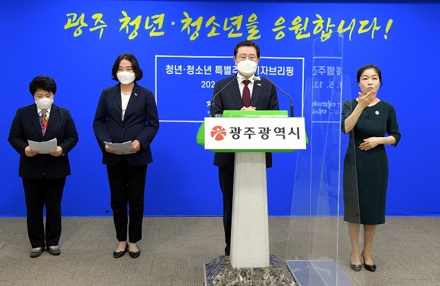 이용섭 광주광역시장은 13일 오전 시청 5층 브리핑룸에서 비대면 온라인 기자회견을 갖고, ‘코로나19 극복을 위한 청년‧청소년 특별주간(5.3.~5.7.)’ 운영의 후속조치를 발표했다.