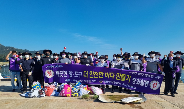 | ▲ 목포해경 흑산파출소, 깨끗한 항포구, 안전한 바다 함께 만들어요!(출처=목포해양경찰서) |