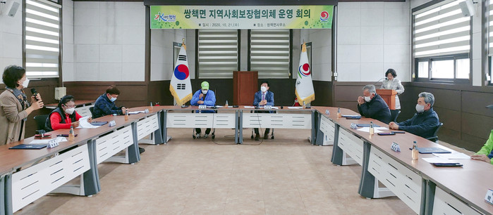 쌍책면 지역사회보장협의체(공공위원장 박상현, 민간위원장 조도현, 이하 협의체)는 지난 10월 21일 면사무소 2층 회의실에서 협의체 위원 10명이 참석한 가운데 2020년 협의체 회의를 개최했다.