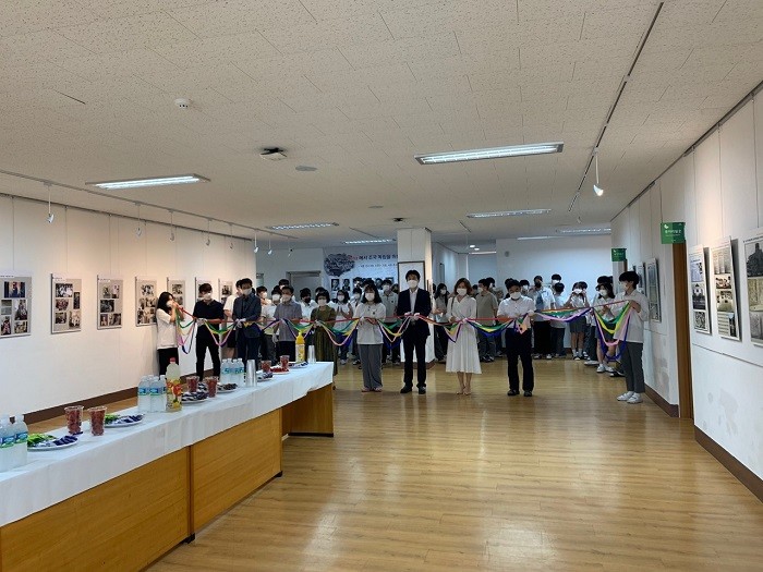| ▲ 해남고등학교, 창의예술관 창예갤리에서 외교부와 전남대 평화통일외교센터 주관, 쿠바한인 100주년 사진전 전시 기념 테이프 절단식 / 사진=해남고등학교 제공 |