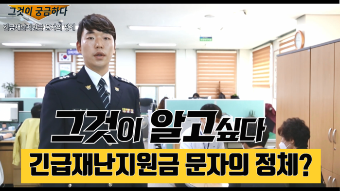 마을주민들과 함안경찰서 직원의 도움으로 제작된 이번 영상에서는 긴급재난지원금 신청 문자를 받은 주민이 군청을 방문하여 문의하는 과정에서 직원이 스미싱 문자임을 알려주고 경찰관이 등장해 경각심을 일깨우면서 관공서 재난지원금 안내문자는 인터넷 링크 주소를 포함하고 있지 않음을 주지시킨다.