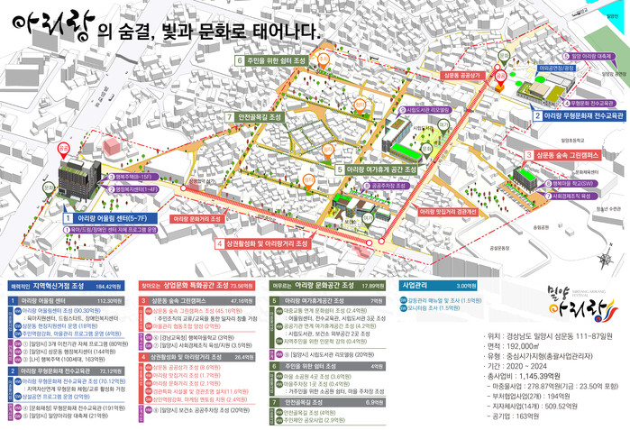 박일호 밀양시장은 “삼문동 도시재생 뉴딜사업은 삼문동 구도심 일원에 새로운 활력을 불어넣어줄 것으로 기대한다. 우리시가 보유한 다양한 무형문화유산을 널리 알리고 보존하기 위해 아리랑을 테마로 한 영남권 무형문화 혁신거점을 만들어 시내권 관광과 상권이 활성화 될 수 있도록 최선을 다하겠다”라고 전했다.